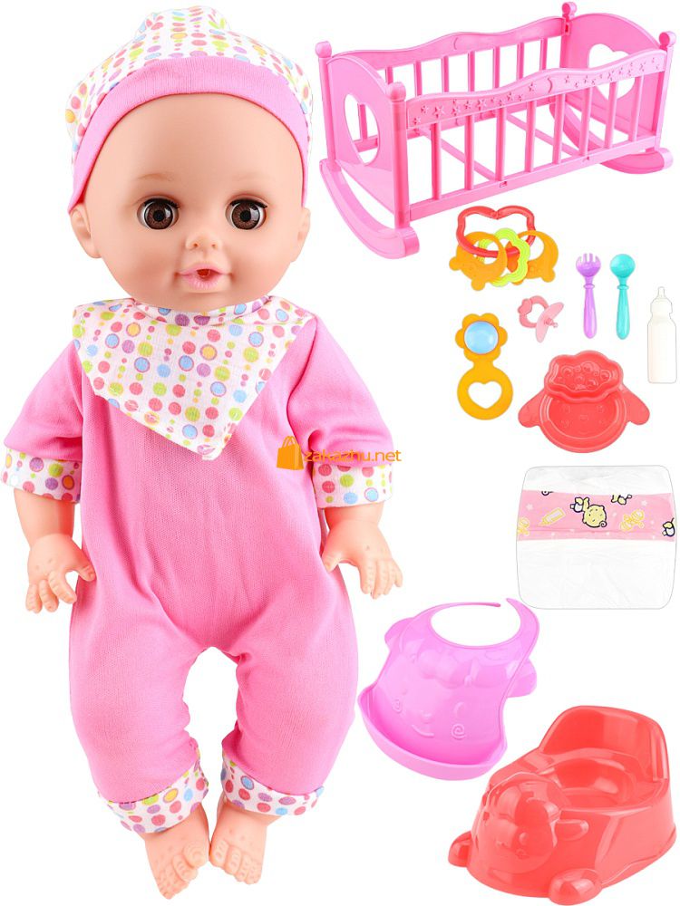 14429786Y Пупс (30 см) "Анжелика" (пьет, писает, звук, с аксесс., закрывает глаза, в сумке)
