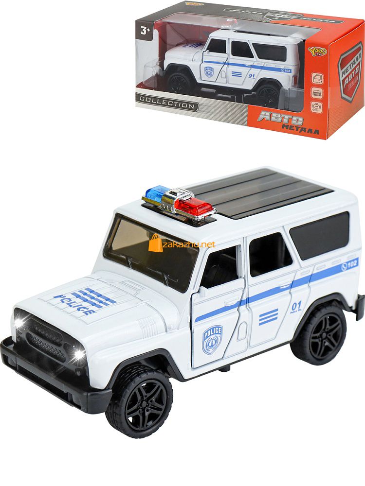 1523M-35B Машинка инерционная свет/звук,металл,цвет белый,1:36, 12,2х5,5х5,3 см, 3 открытые двери