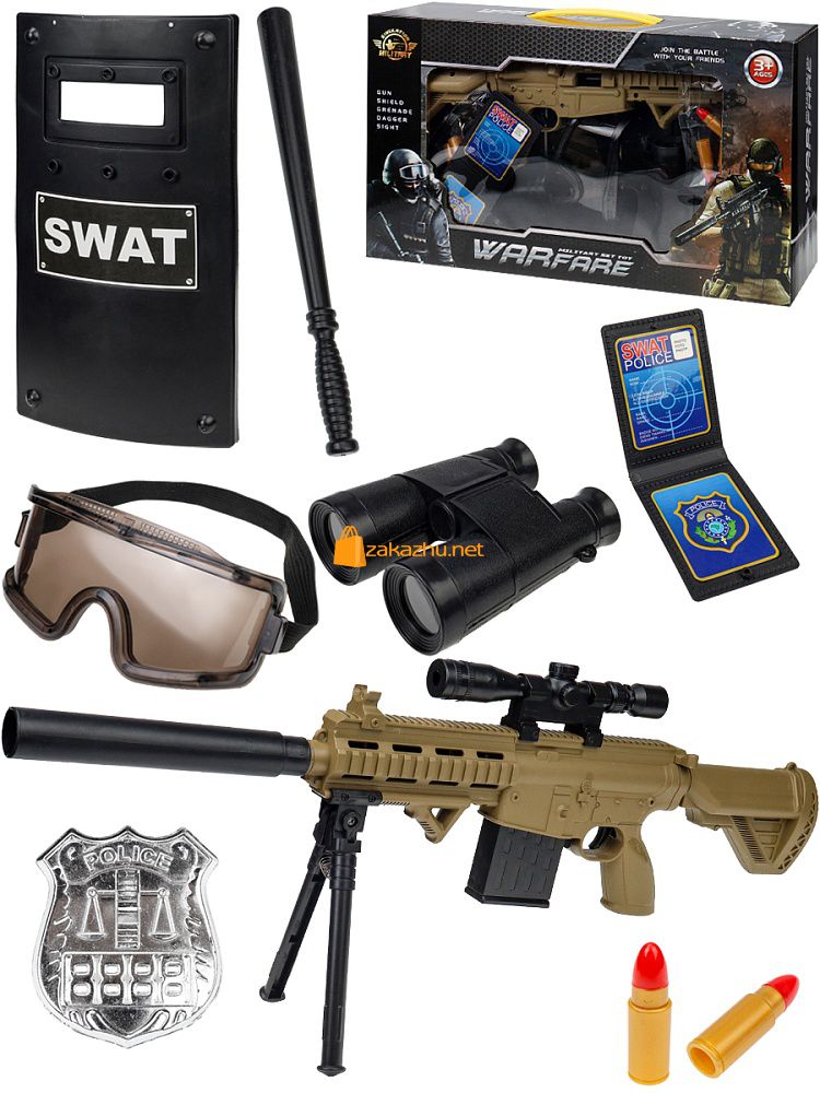 2294130 Набор полицейского.Защита.(10 предм.,2*AA не в компл. и 2*9V в компл., в кор.)(40х8,5х23 см)
