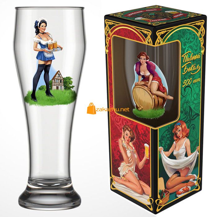 303-Д Бокал пивной 500 мл., Подарочный Pin-up beer