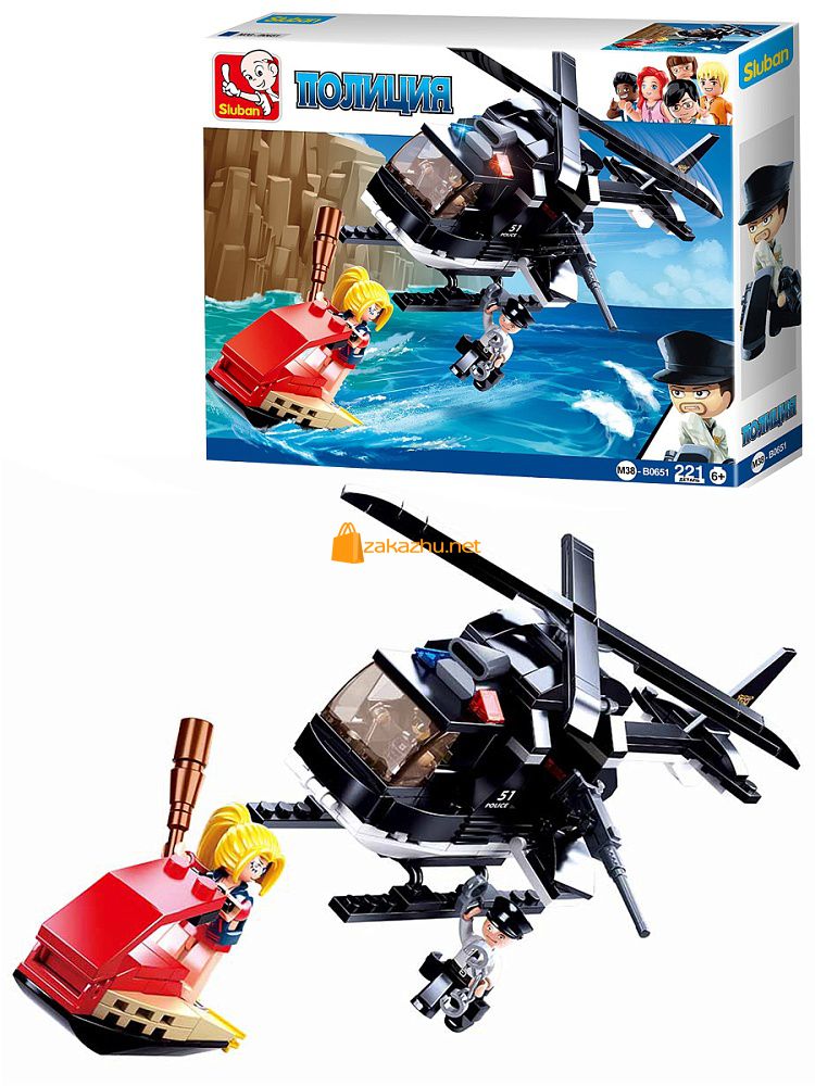 38M-B0651 Конструктор пластиковый. SLUBAN Полиция. Вертолет спецназа (221 деталь, 3 фигурки