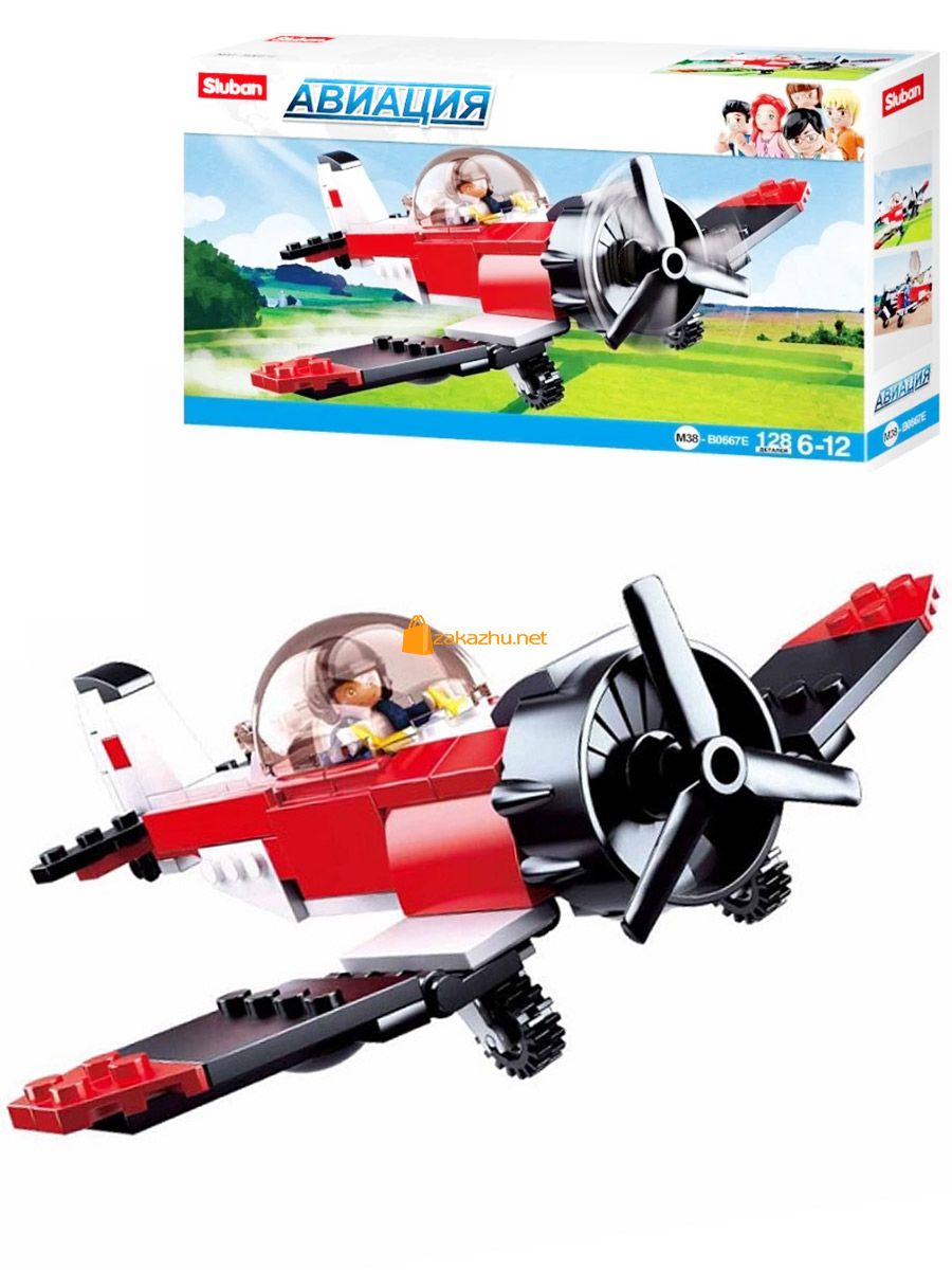38M-B0667E Конструктор пластиковый. SLUBAN Авиация. Пожарный моноплан (128 деталей, 1 фигурка