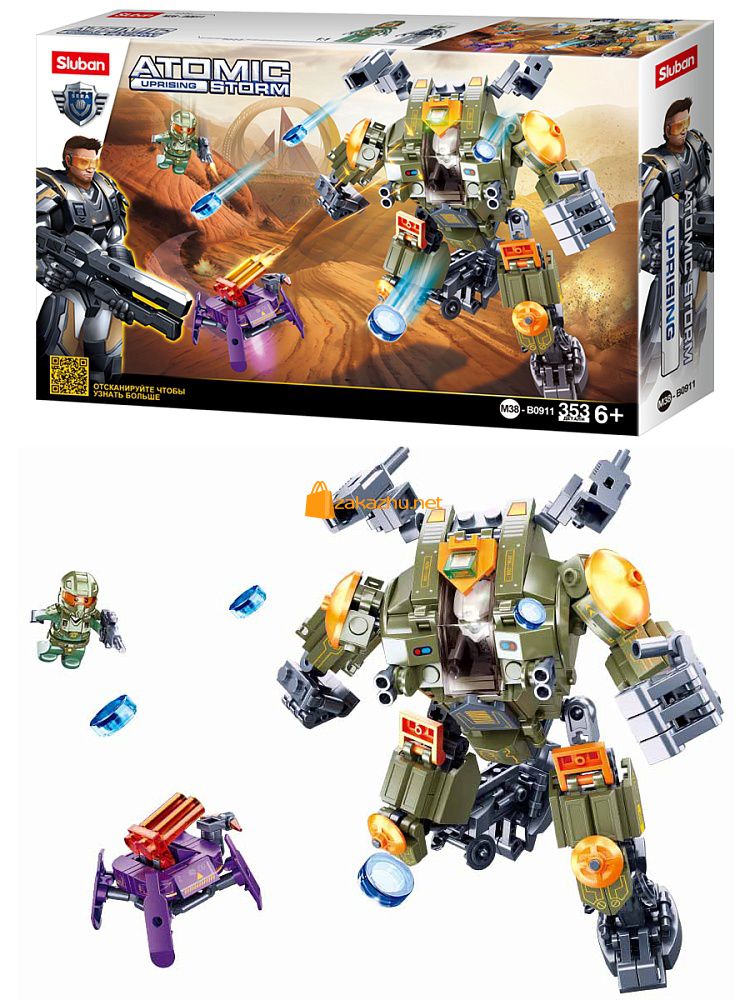 38M-B0911 Конструктор пластиковый Sluban Атомная буря. Атака роботов (353 дет., 2 фигур.)
