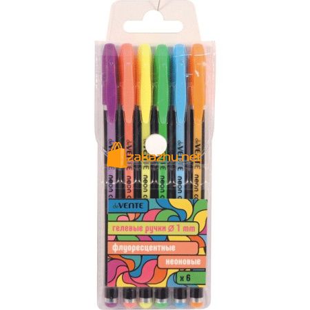 5051812 Набор гелевых ручек, deVENTE «NEON BLACK», 6 цветов, ассорти неоновых цветов, 0,6мм, пишущий