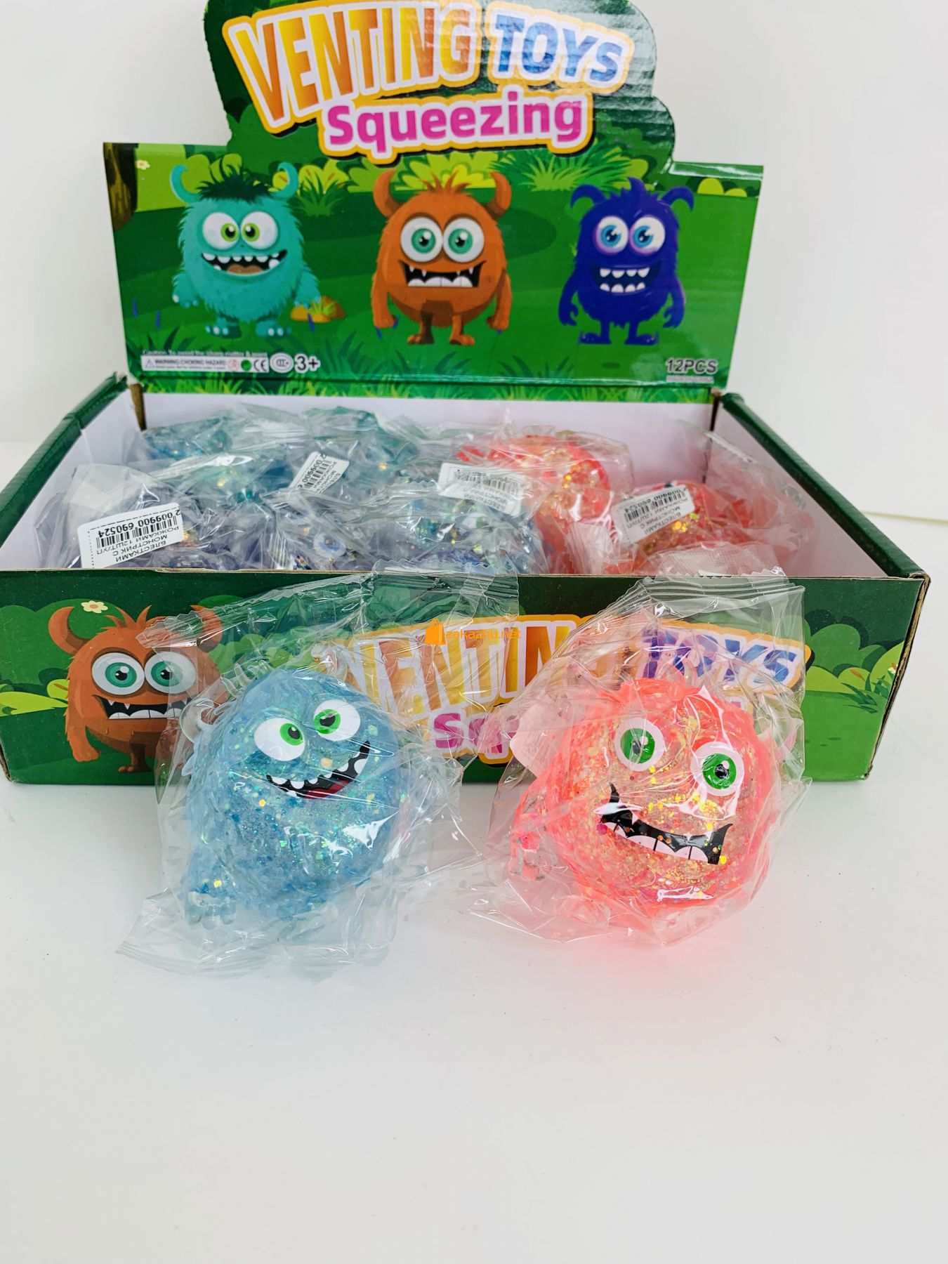 690524 АНТИСТРЕСС ПРОЗРАЧНЫЙ С БЛЕСТКАМИ МОНСТРИК С РОЖКАМИ