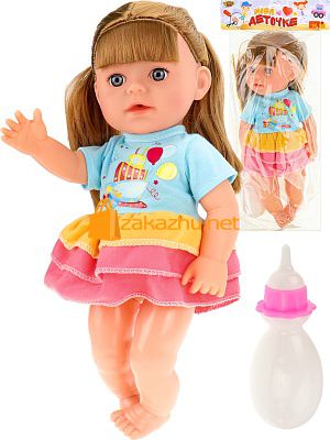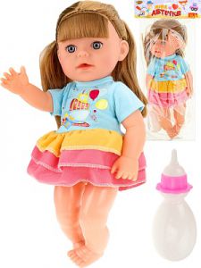 9009M-1 Кукла "Муся" 35см, в наборе с бутылочкой, пьёт , писает, в пакете