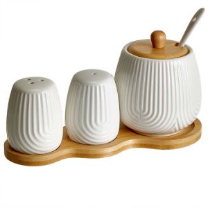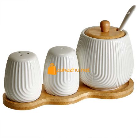 AK5-0013 Набор для специй с сахарницей (300 мл) на бамбуковой подставке