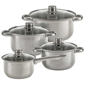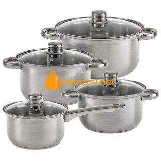 BE-652/8 Набор посуды из нерж.стали 8 пр.с КОВШОМ 1.9л,2,6л,3.5л,4.2л стек.крышки"Standart+" WEBBER