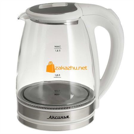 Чайник АКСИНЬЯ КС-1021 корпус из жаропр. стекла 1,8л,1500Вт, белый