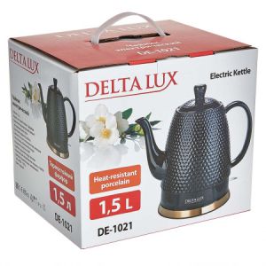 Чайник DELTA LUX DE-1021 корпус из фарфора: 1500 Вт, 1,5л черный