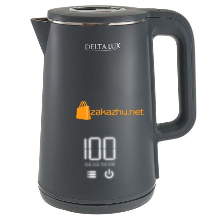 Чайник DELTA LUX DE-1023, ДВОЙНОЙ КОРПУС, LCD дисплей, 5 режимов, 1,8 л, 2000 Вт, серый