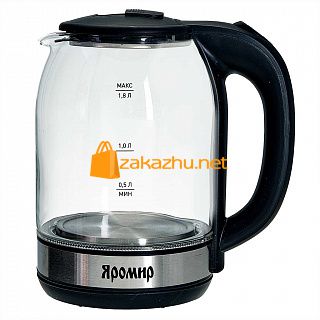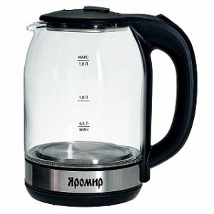 Чайник ЯРОМИР ЯР-1061 корпус из жаропр. стекла, черный: 1500Вт, 1,8л