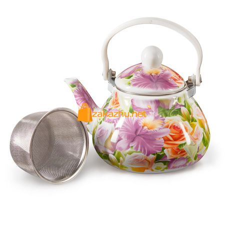 EM-131X1/8 Чайник эмалированный с фильтром из нерж.стали 1,3л "Орхидея"