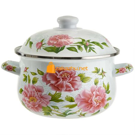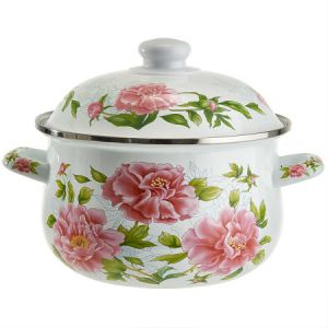 EM-1503 Кастрюля эмалированная с эмалированной крышкой 3,6 л,d=22см,"Пионы"MetaLLoni