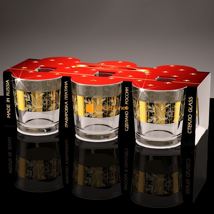 GN40 Стаканы 250 мл 6 шт Золотая полоса цветы