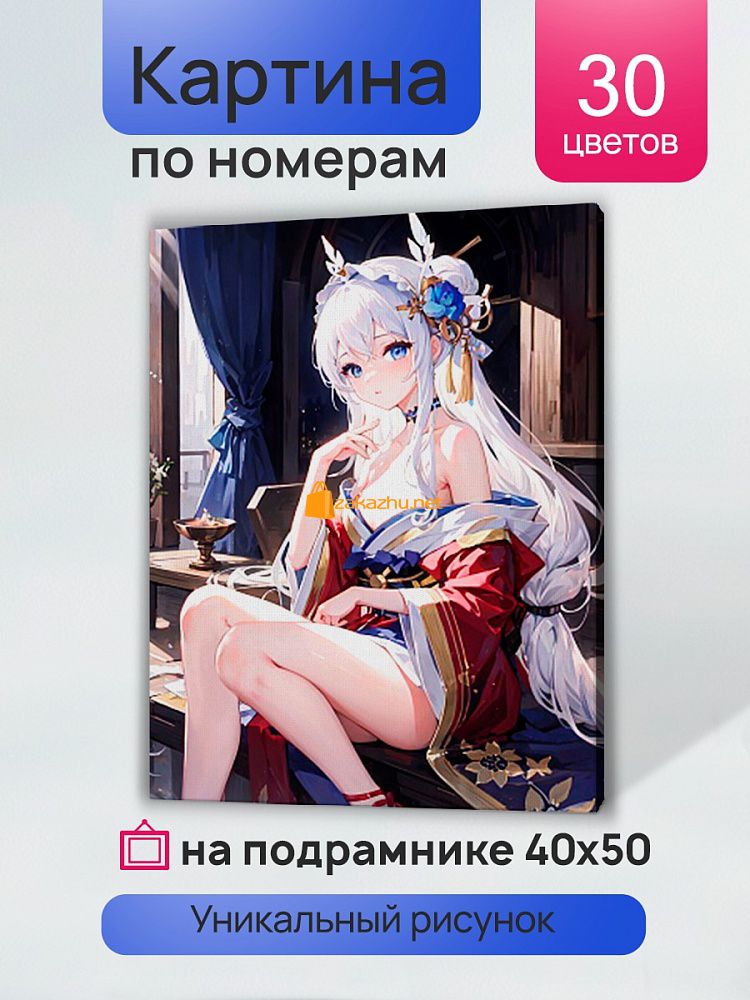 Х-4576 Холст с красками 40х50 см по номерам (в коробке) (30цв.) Девушка в кимоно