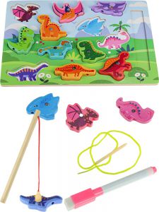 И-0411 Деревянная игрушка. Рамка-пазл магнитная с рыбалкой и маркером 30х22см.