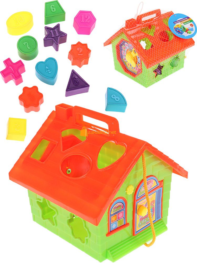И-1659 Сортер "Домик" (16см*15.5см*15см, длина веревки 20 см), сетка