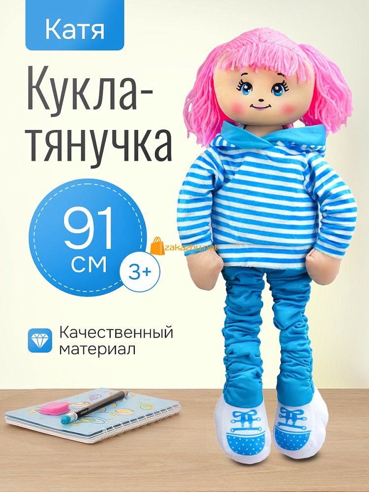 ИК-7835 Мягкая кукла-тянучка "Катя" (60см, растягивается до 91см, в пакете) голубая