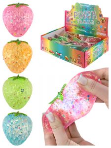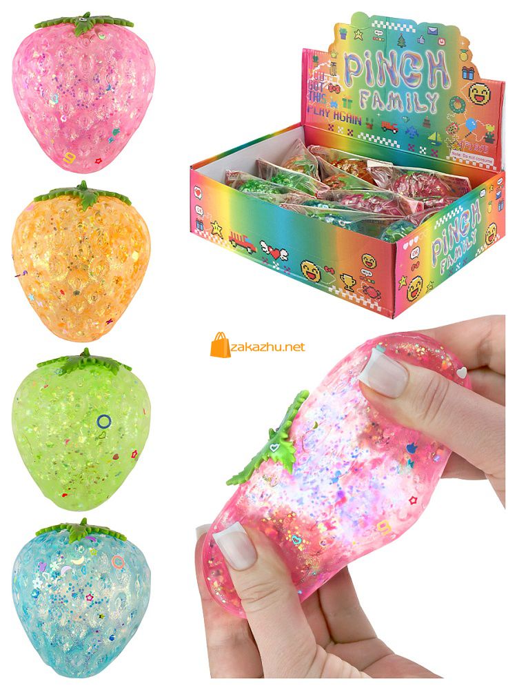 JD3773 Антистресс-мялка "Клубничка" (4 цвета микс, 12 шт. в шоу-боксе, с блестками) кратно 12