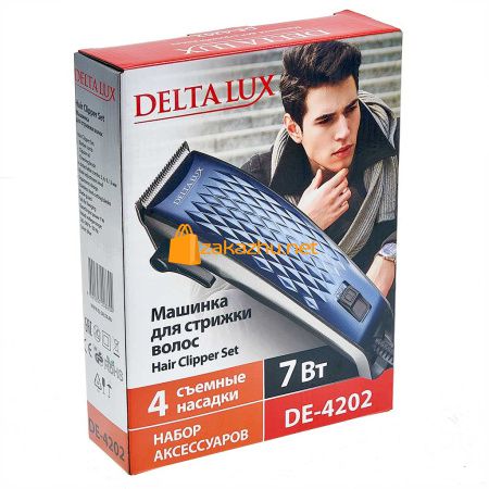 Машинка для стрижки DELTA LUX DE-4202 синий, 7 Вт, 4 съемных гребня