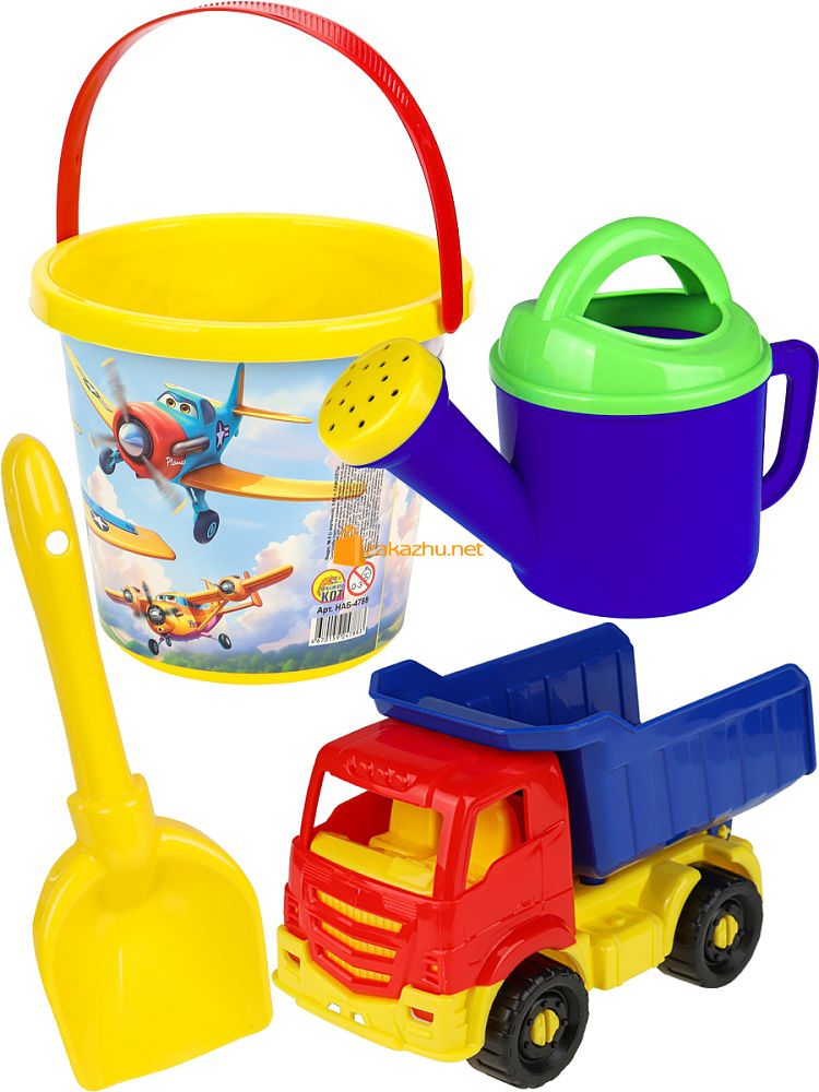 НАБ-4803 НАБОР №120 (Самосвал "ЯРОСЛАВ",ВЕДРО №8(0.85л.) САМОЛЕТЫ+ лейка+ лопатка 22