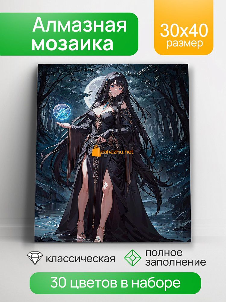 НД-0337 Алмаз мозаика (клас.) 30х40 см, с подр., с полн. заполн. (30 цв.) Темная жрица