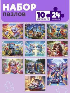 П24-2495 МИКС. ПАЗЛЫ 24 элемента. ЛЮБИМЫЕ ИСТОРИИ (10 шт в шоубоксе)