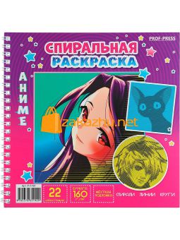 Р-5190 СПИРАЛЬНАЯ РАСКРАСКА «АНИМЕ»,192х192,12л,обл-ц.карт,бл-офс160г,1+1,жестк.подл,гребен