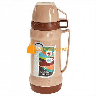 Термос AK-10035S со стеклянной колбой 1,0л, 2 крышки-чашки,корич Alpenkok