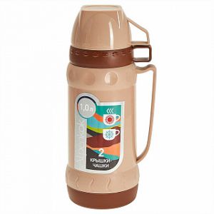 Термос AK-10034S со стеклянной колбой 1,0 2 крышки-чашки,беж Alpenkok