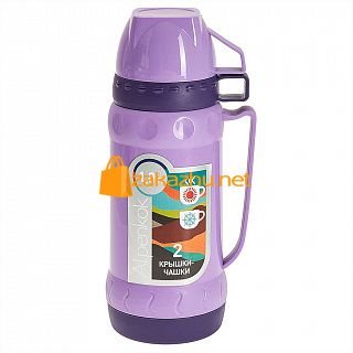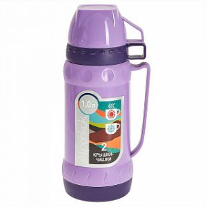 Термос AK-10037S со стеклянной колбой 1,0л, 2 крышки-чашки,лаванд ALPENKOK