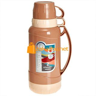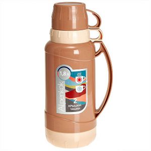 Термос AK-10106S со стеклянной колбой 1,8л, 2 крышки-чашки,беж ALPENKOK